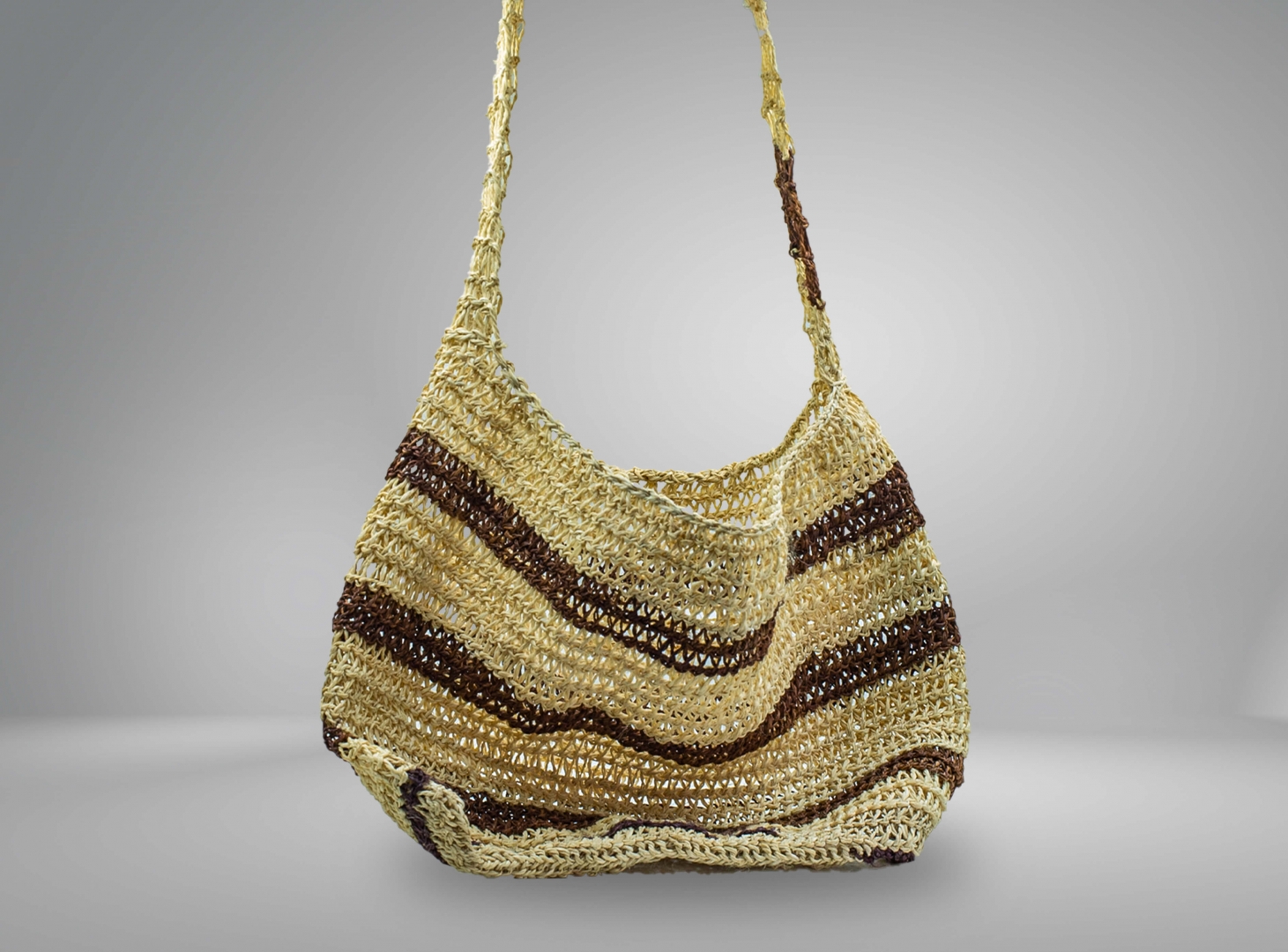 Objeto para transportar materiales y cosas, es tejido a mano de fibra de chambira.